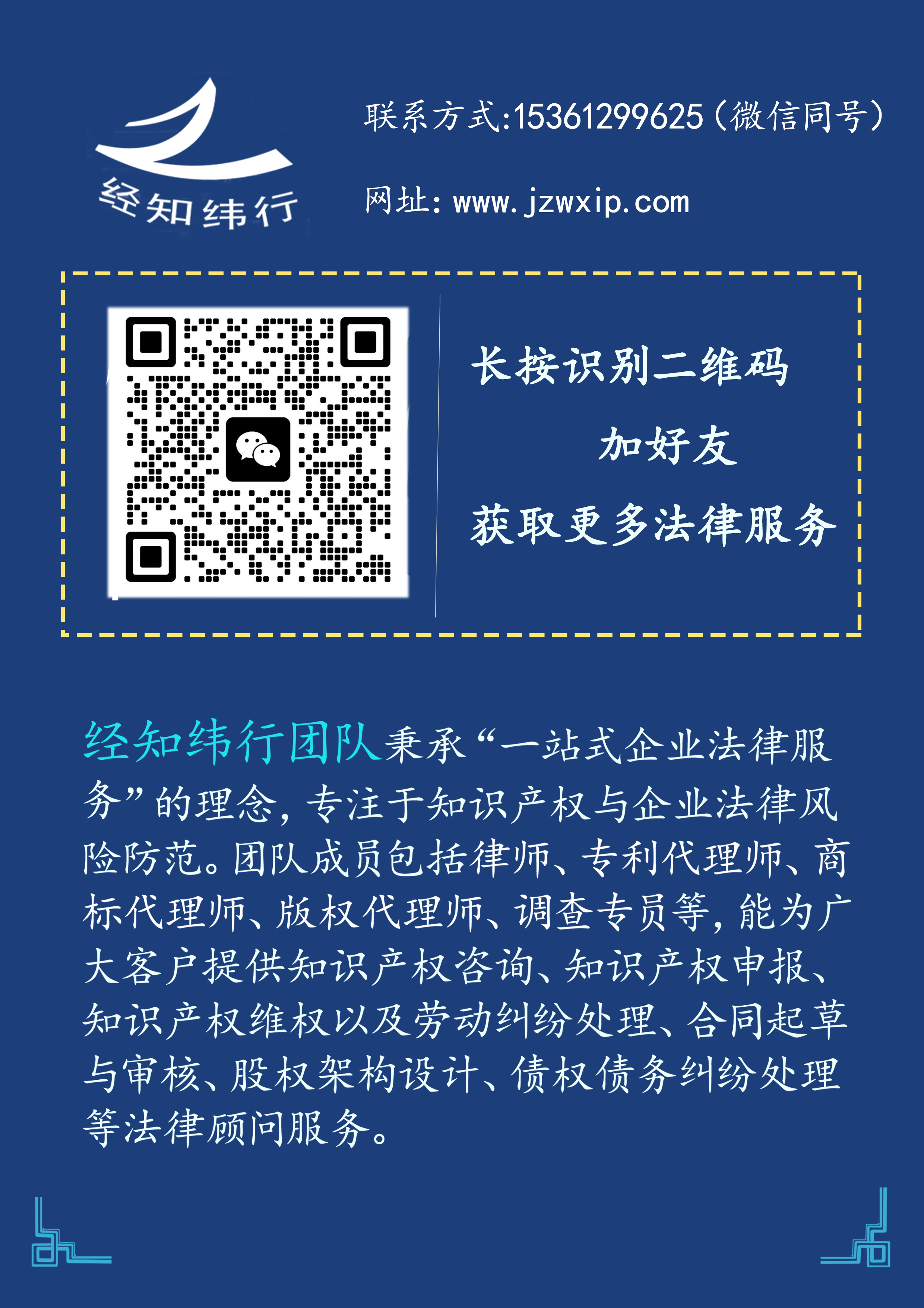 经知纬行团队秉承“一站式法律服务”的理念,专注于知识产权(商标、专利、版权)与法律风险防范。